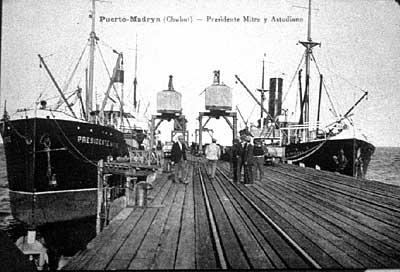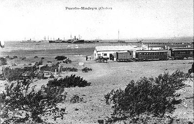 Un cambio de gerencia Porque todas las acciones eran poseídas por la Port Madryn (Argentina) Company no estaban regularmente asambleas generales con minutas para iluminarnos. La junta nueva no perdió tiempo cambiar el ferrocarril. La compañía propietaria, la Port Madryn Company, fue contratado a construir y equipar la extensión demorada a Gaiman, construir una estación nueva en Puerto Madryn, talleres nuevos y el muelle nuevo de acero. Se pidieron dos máquinas, también vagones nuevos y una grúa a vapor para el muelle. Se emitieron más acciones. El muelle de Puerto Madryn con dos vapores, el Presidente Mitre y el Astudiano, amarrados.