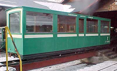 Este es el primero coche del estilo nuevo, mostrando sus balcones abiertos y su techo de centro elevado.
