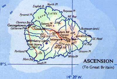 Saint Helena y Ascension están visibles en el mapa arriba. Las otras islas — Tristan da Cunha y Trinidad — no tenían ningún ferrocarril y no están ilustrada en el mapa. Una línea tranviaria para la suciedad de la noche...