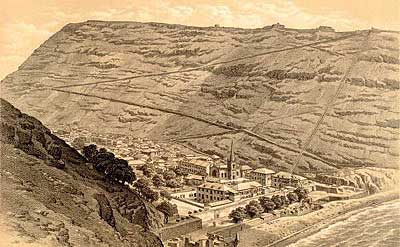 Una cosa distintiva del pueblo es Jacob's Ladder (= escalera de Jacobo) con sus 699 peldaños, hasta un fuerte arriba. Fue construida en 1829 con un tranvía inclinado de trocha cuatro pies (1,22m) (1). El Señor G W Mellis fue ingeniero de la obra, bajo la dirección del Gobernador, el General de Brigada Dallas, de la Compañía Honorable del India Oriental (2). Los origines citadas en 1828 era las rampas en Bridgnorth y Monmouth (Inglaterra) (13). A solo cuatro años la isla cambió de ser bajo la regla de 'John Company' a la del gobierno británico. Parece que la rampa fue construida particularmente, pero con inversión gubernamental. En 1832 fue comprada de su patrón por el gobierno isleño en la suma de £882 10 s (882 libras y 10 chelines). La grabación de 1863, debajo, muestra Jamestown con la rampa visible claramente por el precipicio a la derecha (3). Esta ilustración y la otra más abajo fueron descubiertas en la biblioteca y archivo virtual Saint Helena, mantenido por el Señor Barry Weaver.