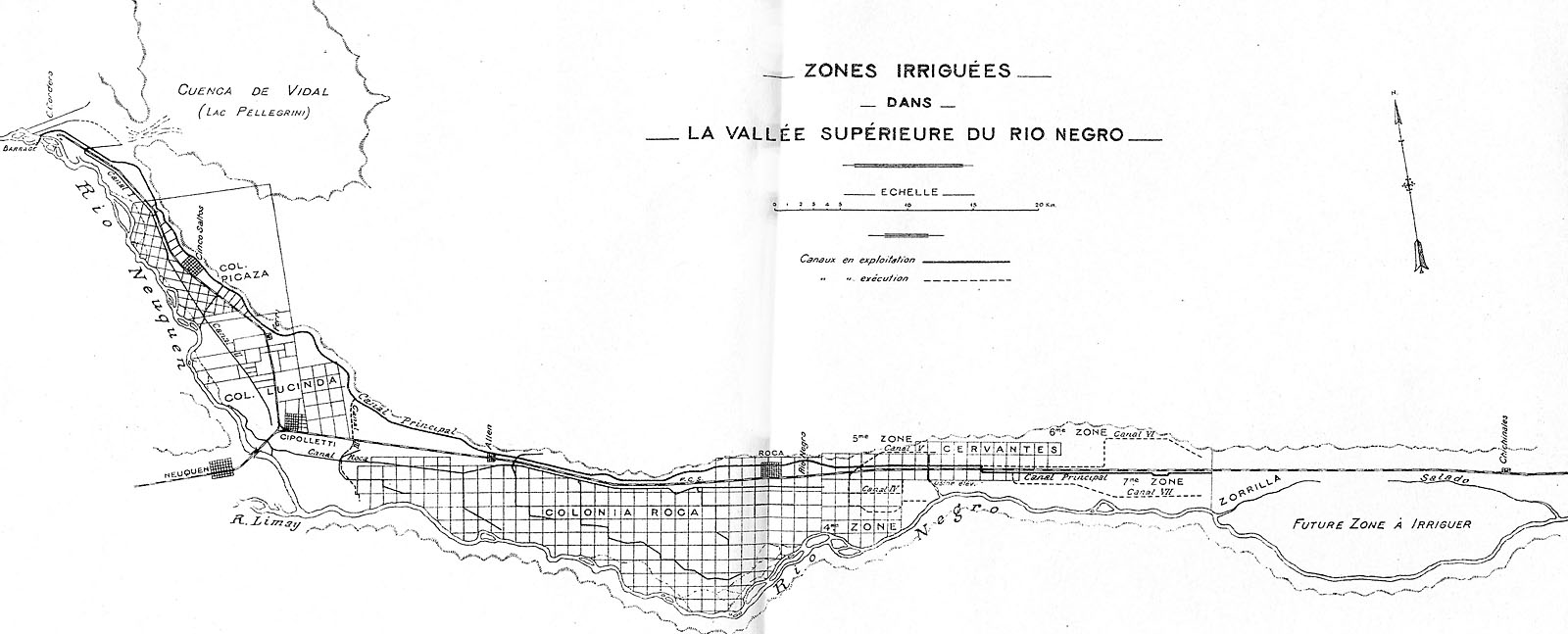 Apéndice 2 Mapa de la zona de irrigación en el valle alto del río Negro. Lamentablemente no se indican en el mapa las rutas de los ferrocarriles ligeros, pero es clara su zona de operaciones. |